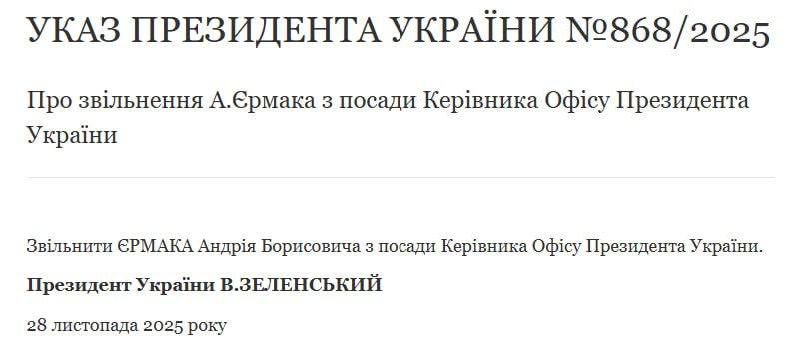 “Ofisin rəhbəri Andrey Yermak istefa ərizəsi yazıb. Prezident Aparatında Yermakın rəhbərlik etdiyi strukturun yenidən qurulması həyata keçiriləcək. Sabah bu instituta rəhbərlik edə biləcək namizədlərlə məsləhətləşmələr aparacağam”, – V. Zelenski qeyd edib.