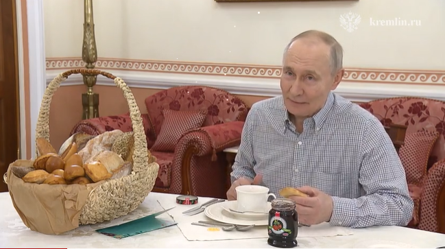 Videoda Vladimir Putinin çay süfrəsi arxasında əyləşdiyi görünür. Süfrədə çörək, pirojkalar və digər bişmiş məmulatlarla dolu səbət yer alır. Prezident hədiyyəyə görə çörəkxananın sahibinə təşəkkür edib, onu qarşıdan gələn bayramlar münasibətilə təbrik edib və öz növbəsində Yeni il üçün hədiyyələr göndərib. Videonun sonunda Putin mürəbbəli çayla birlikdə pirojkalardan birini dadır.