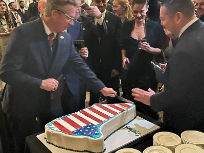 ABŞ Respublikaçılar Partiyasının nümayəndələri Qrenlandiya xəritəsi formasında və Amerika bayrağının rəngləri şəklində tort kəsib yeyiblər.