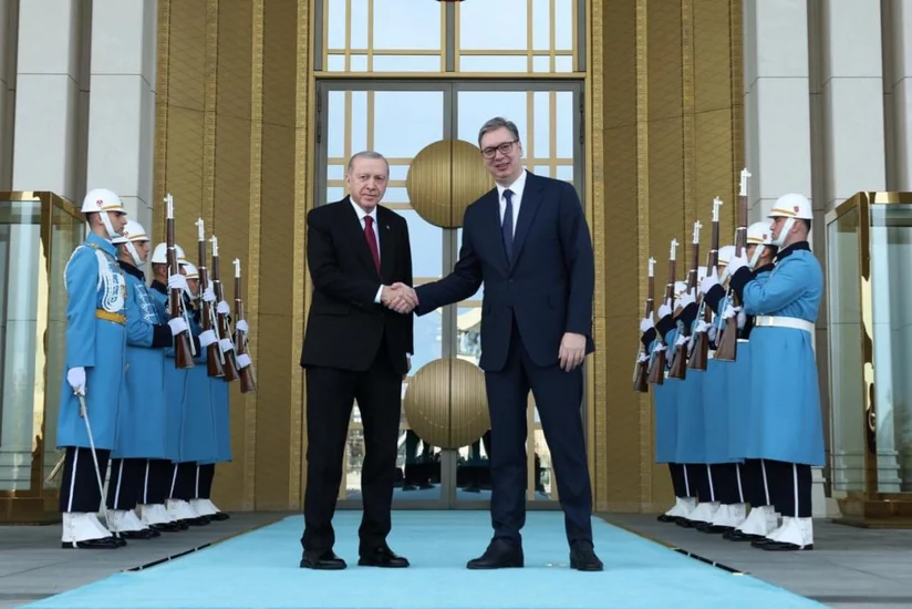 Teleqraf "Anadolu agentliyi"nə istinadən xəbər verir ki, Vuçiçi Türkiyə Prezidenti Rəcəb Tayyib Ərdoğan qarşılayıb.