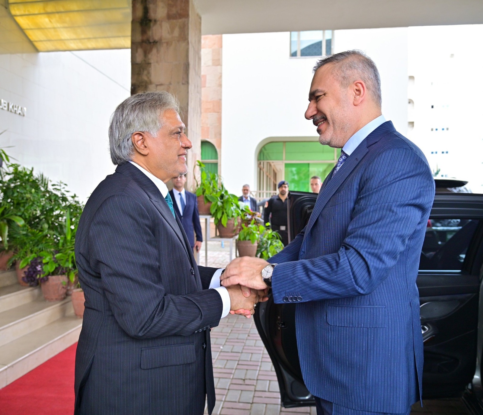 Məlumata görə, Hakan Fidanı Pakistanın Baş nazirinin müavini və xarici işlər naziri Məhəmməd İshaq Dar qarşılayıb.