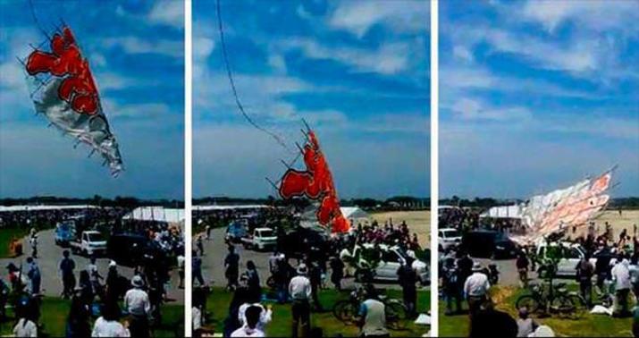 Uzunluğu 13 metr, eni 12 metr, çəkisi isə təxminən 700 kiloqram ağırlığında olan çərpələng tamaşaçıların üzərinə düşüb.