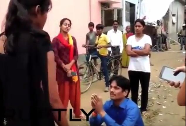 Hadisə Hindistanın Laknov şəhərində qeydə alınıb. Qızlardan ibarət qrup təcavüzkarı tutaraq, cinayət qurbanının yanına gətirib. Gənc qızın vurduğu zərbələrə dözə biıməyən oğlan ona yalvararaq, bağışlanmasını istəyib.