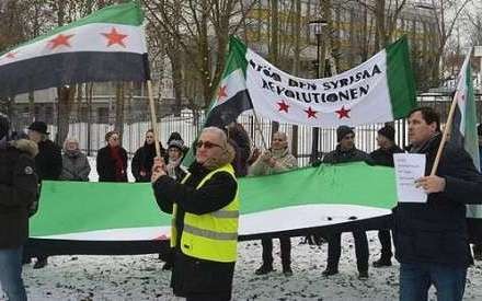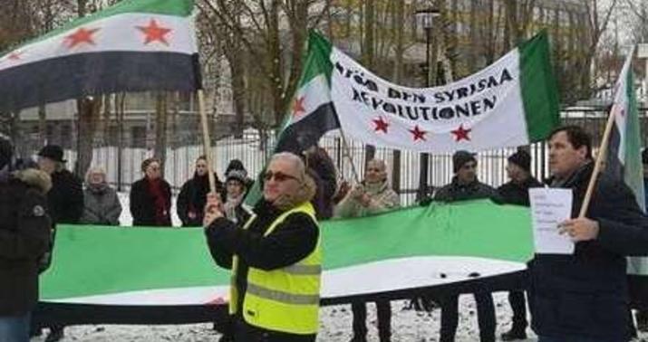 İsveçin paytaxtı Stockholmda Rusiya səfirliyi qarşısında toplanan bir qrup aktivist Rusiya və Bəşər Əsəd rejiminə etiraz edib.