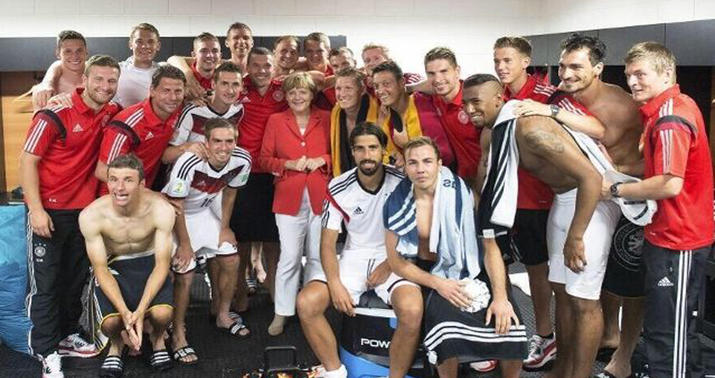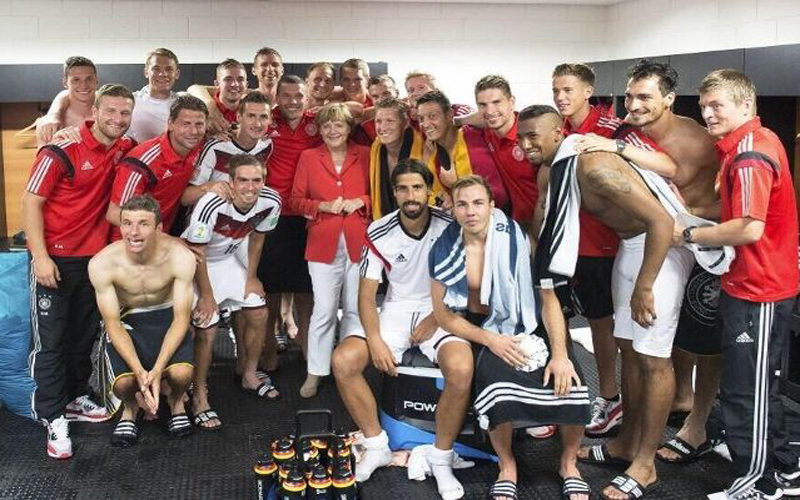 Almaniya komandası 4:0 hesabı ilə Portuqaliyaya qalib gəlib oyunu başa vurandan sonra baş nazir Angela Merkel soyunub-geyinmə otağına gedib, alman futbolçuları təbrik edib və onlarla şəkil çəkdirib.