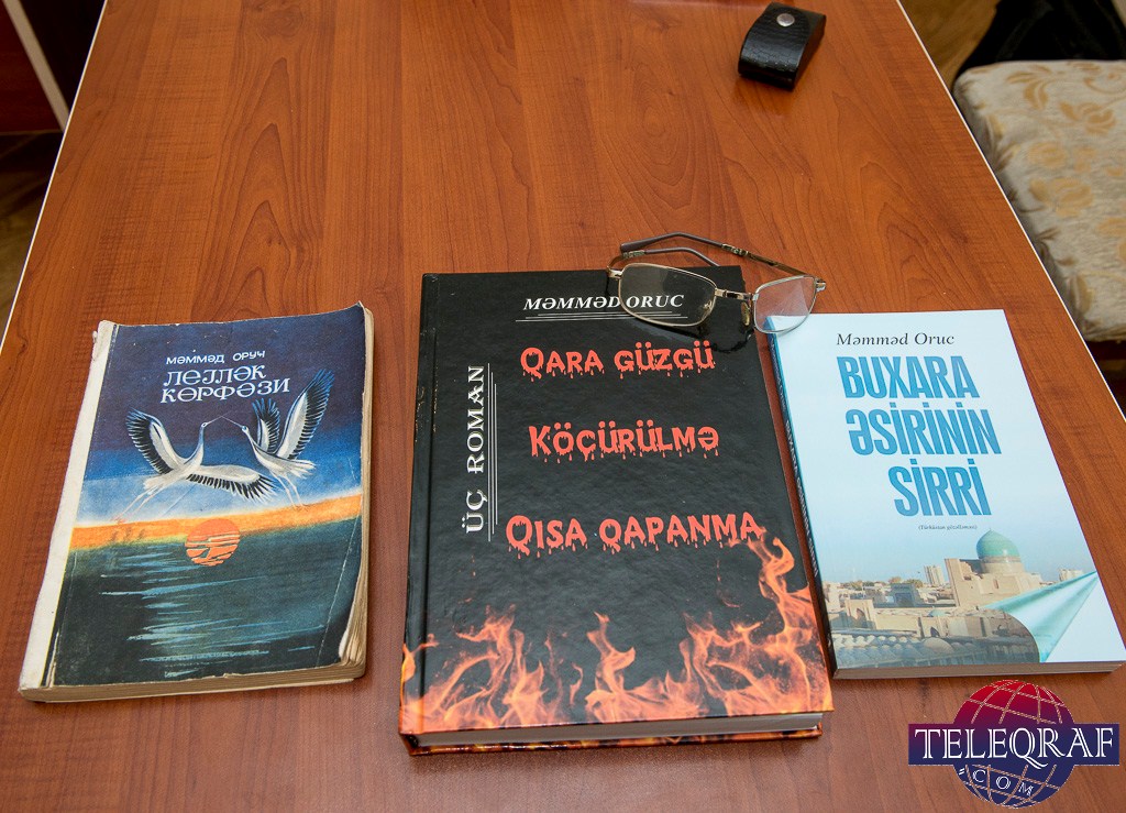 Əlimdə bir kitab var. Adı: “Leylək körfəzi”. Müəllif: Məmməd Oruc. Bu kitabda mərhum dostumuz Mövlud Mövludun qeydləri var. Sonuncu oxuduğu kitab imiş. Reportaja gələndə özümlə götürdüm. Ki, Məmməd müəllimə göstərim. Qalxırıq “Azərbaycan” jurnalının redaksiyasına. Məmməd Oruc burdadı. Məmməd müəllimlə ikinəfərlik salamlaşıram.