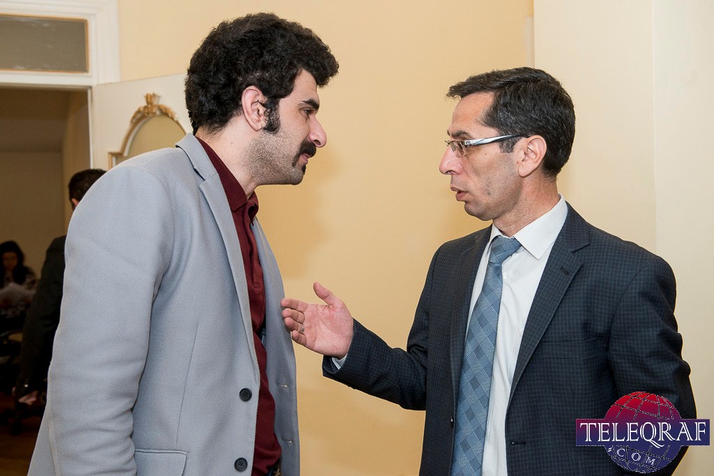 İlk qarşılaşdığım kim olsa yaxşıdı? Yox, düz tapmadınız – Seyran Səxavət. Dayandur Sevgin bu dəfə ikinci oldu. İlk olaraq Seyran Səxavəti gördüm. Seyran müəllim də kostyum geyinmişdi. Deyəsən bu gün hamı kostyumlanıb çıxıb şəhərə. Özümü təqdim edirəm: