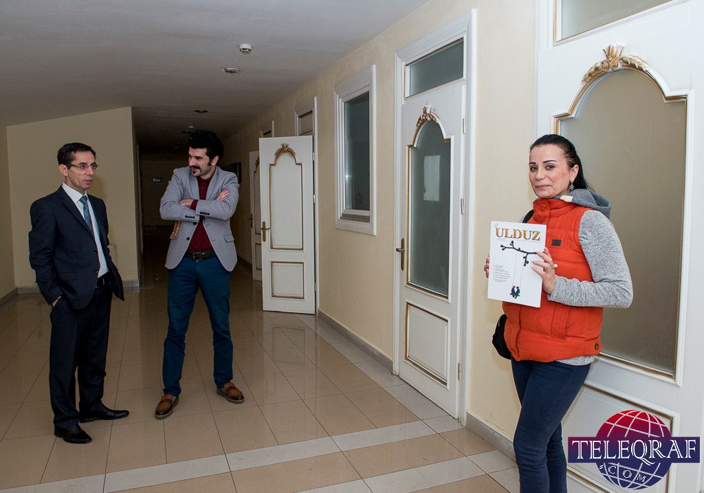 “Ulduz” jurnalının redaksiyası da bu mərtəbədə yerləşir. İnanmazsınız, baş redaktoru Qulu Ağsəs də burdadı. Zarafat eləmirəm, şəkillərimizə baxın. Qulu maraqlı şair olduğu kimi, maraqlı da insandı. Di gəl, birmənalı şəkildə kreslo yaraşmır Quluya.
