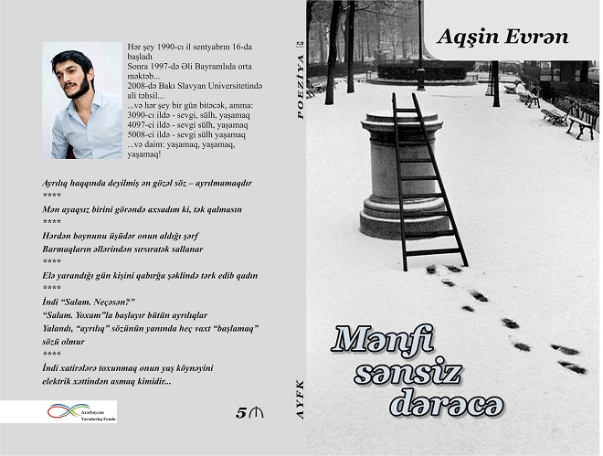 Xatırladaq ki, mayın 6-sında Aqşin Evrənin “Mənfi sənsiz dərəcə” şeirlər kitabının təqdimat mərasimi keçiriləcək. Gənc Tamaşaçılar Teatrında baş tutacaq mərasim saat 17:00-dan 19:00-a qədər davam edəcək. Kitabda müəllifin son 10 ildə yazdığı seçmə şeirləri yer alıb.