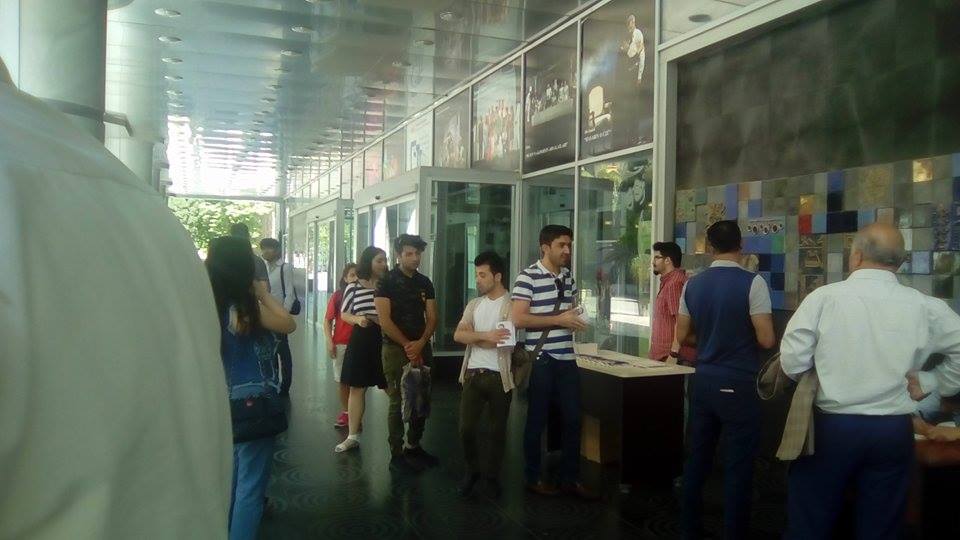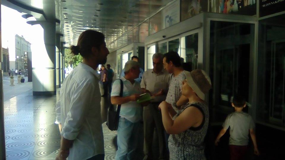 Çatdıq. Saat 16:00, teatrın önü. Son vaxtlar teatrlarda təqdimat keçirmək yazarların arasında dəbə minib. Necə ki tanınmış ədəbiyyat adamlarının teatrlardan nəşini çıxarırlar, deyəsən, indi də təqdimatların “nəşi”ni oradan yola salmaq qərarına gəlmişik. Önümə ilk çıxan Şərif Ağayar, Ağa Cəfərli və dostları olur.
