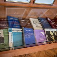 Masanın yanında yazıçının sevimli kitabları qoyulmuş rəf yerləşir, divarda isə ədibin Azərbaycanın xalq rəssamı Altay Hacıyev tərəfindən işlənmiş portreti yer alır.