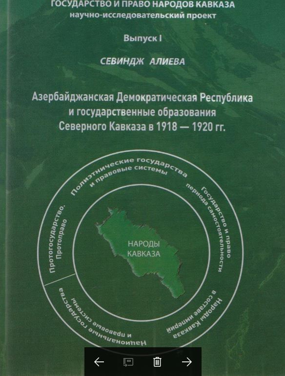 Rusiya Federasiyasının Prezidenti yanında Rusiya Xalq Təsərrüfatı və Dövlət Qulluğu Akademiyasının filialı olan Cənubi Rusiya İdarəetmə İnstitutunun Hüquqi Tədqiqatlar Mərkəzinin direktoru, professor Dəmir Şapsuqovun dəstəyi ilə “Qafqaz xalqlarının dövlət və hüququ” layihəsi çərçivəsində çap olunmuş Sevinc Əliyevanın kitabının elmi redaktorları professor Aleksey Çikovani və tarix üzrə fəlsəfə doktoru Eldar Abbasov, rəyçilər isə professor İqor Turitsın və dosent Firdovsiyyə Əhmədovadır.