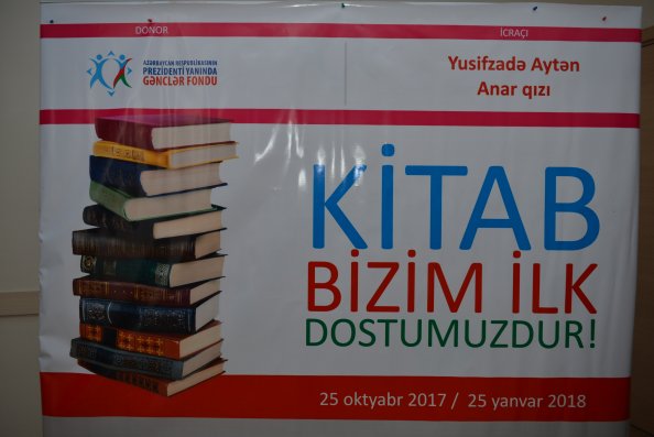 Azərbaycan Respublikasının Prezidenti yanında Gənclər Fondunun maliyyə dəstəyi ilə 10-cu qrant müsabiqəsi çərçivəsində qalib olmuş "Kitab bizim ilk dostumuzdur!" adlı layihənin icrası yekunlaşıb.