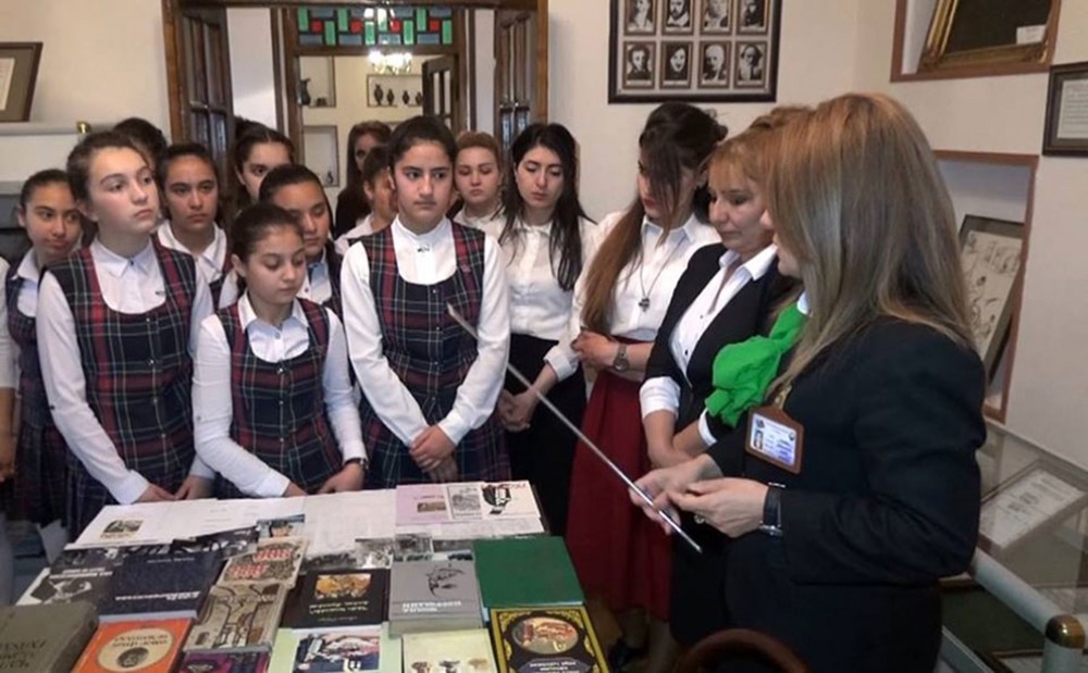 Sonra Naxçıvan Qızlar Liseyinin şagirdləri Cəlil Məmmədquluzadənin hekayə və felyetonları əsasında hazırlanan kompozisiyanı təqdim ediblər.