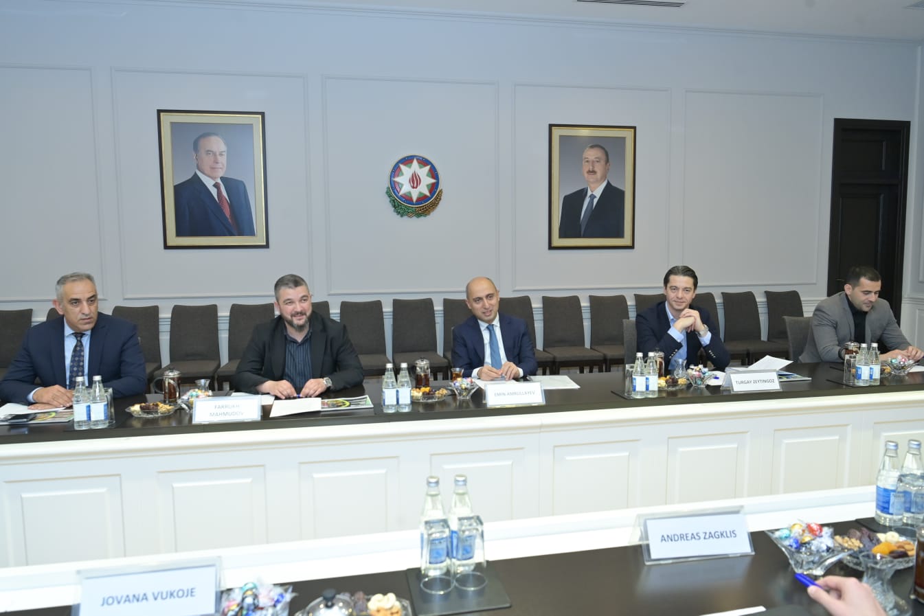 Bu gün Azərbaycan Basketbol Federasiyasının (ABF) prezidenti Emin Əmrullayev və federasiyanın digər rəsmiləri ilə Beynəlxalq Basketbol Federasiyasının (FIBA) baş katibi Andreas Zaqklis, 3x3 basketbol yarışlarının meneceri Yovana Vukoye və Basketbol Çempionlar Liqasının kommersiya direktoru Benjamin Qoute arasında görüş olub.