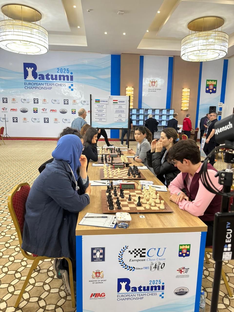 Qadınlardan ibarət Azərbaycan yığması ikinci turda Macarıstanı 2,5:1,5 hesabı ilə məğlub edib. Ülviyyə Fətəliyeva və Ayan Allahverdiyeva partiyanı qələbəylə başa vurub. Gövhər Beydullayeva heç-heçə edib, Xanım Balacayeva isə məğlub olub.