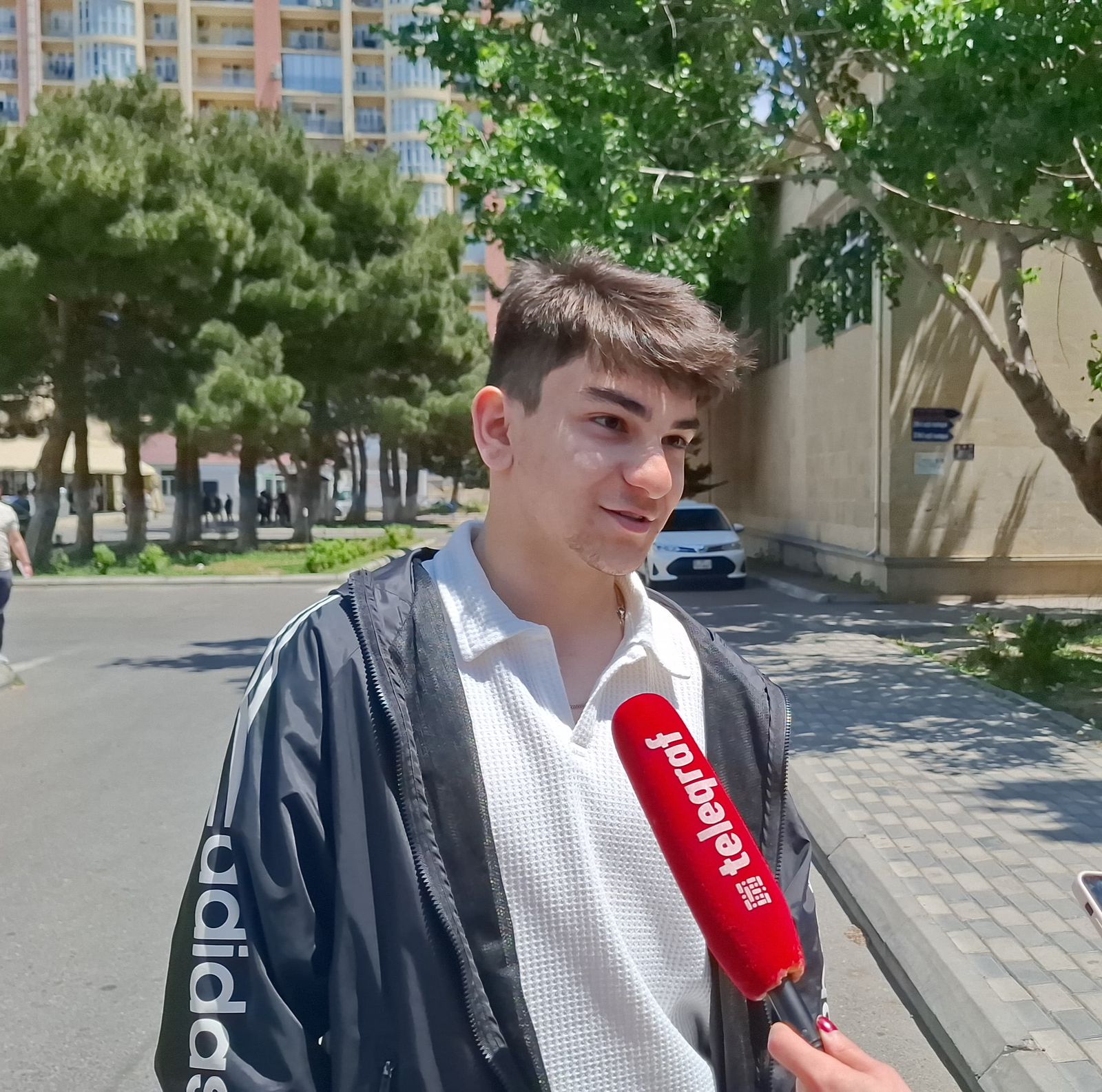 “Suallar normal idi, amma daha asan olacağını gözləyirdim. Ən çox coğrafiya və tarix çətin gəldi. Buraxılış imtahanından 120 bal toplamışam, bu dəfə daha yaxşı nəticə gözləyirəm. Arzum Bakı Dövlət Universitetinə qəbul olmaqdır”.