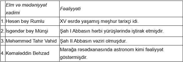 Elm və mədəniyyət xadimlərinin fəaliyyətinə aid olan doğru sıraları müəyyən edin.