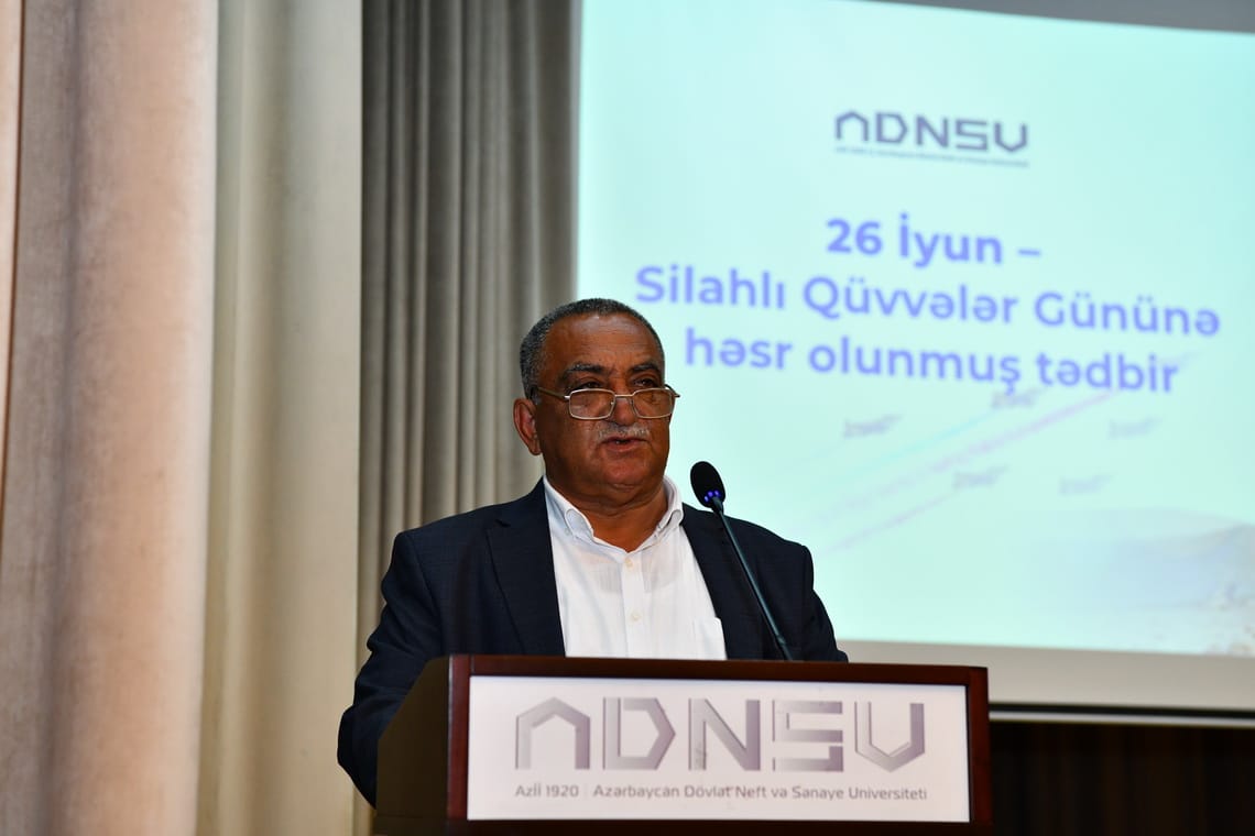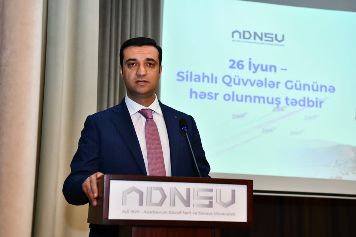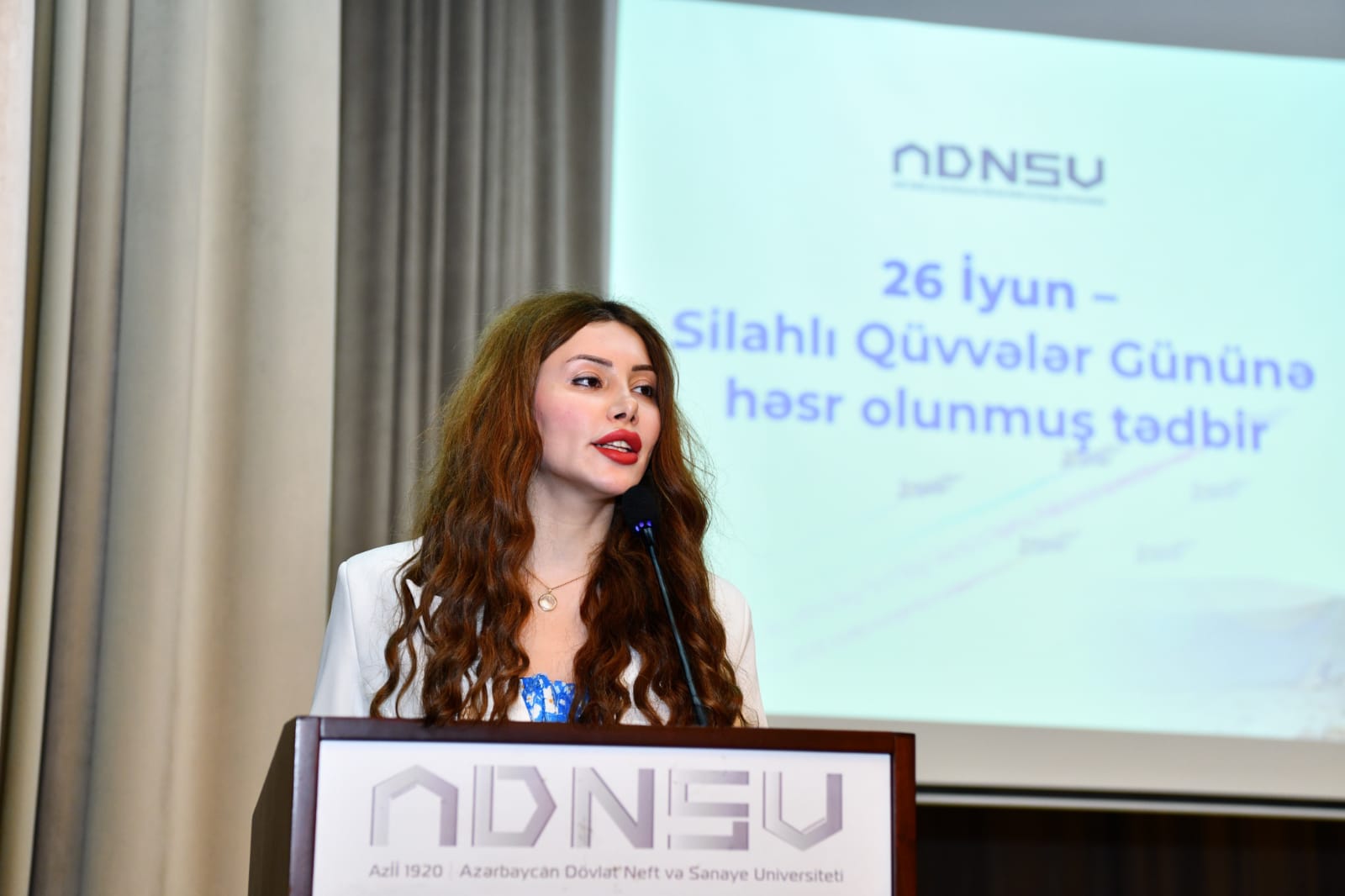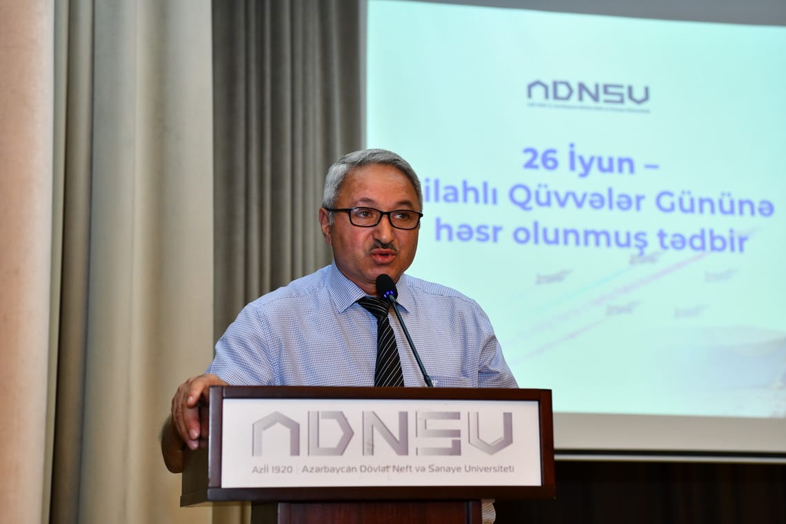Azərbaycan Dövlət Neft və Sənaye Universitetində (ADNSU) 26 İyun – Silahlı Qüvvələr Günü münasibətilə hərbi-vətənpərvərlik mövzusunda tədbir keçirilib.