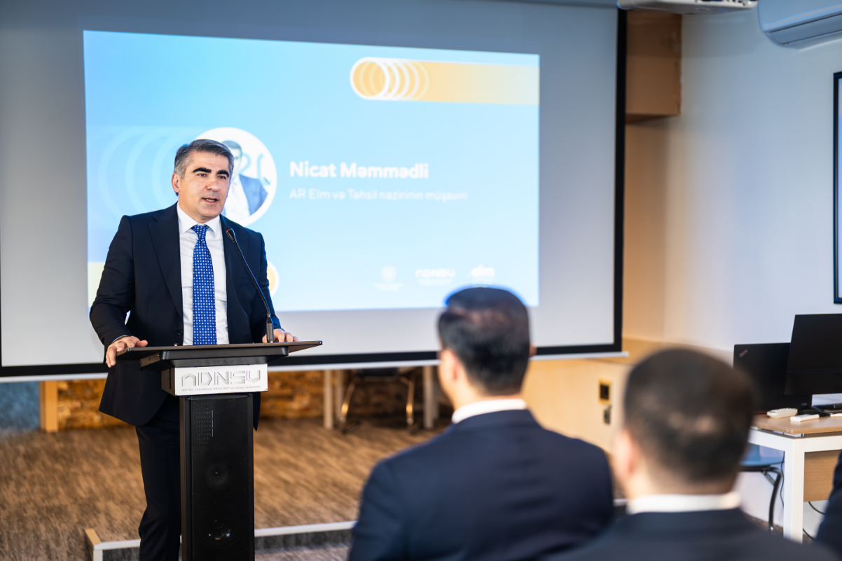 Elm və təhsil nazirinin müşaviri Nicat Məmmədli çıxışında mərkəzin açılmasını yüksək qiymətləndirib. O, sənaye sahələrindən daxil olan tələblərə uyğun yeni innovativ layihələrin icrasının universitetlər üçün, o cümlədən ADNSU üçün mühüm imkanlar yaratdığını bildirib: