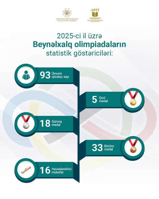 2025-ci il ərzində Azərbaycan məktəbliləri beynəlxalq fənn olimpiadalarda ümumilikdə 26 medal əldə ediblər.