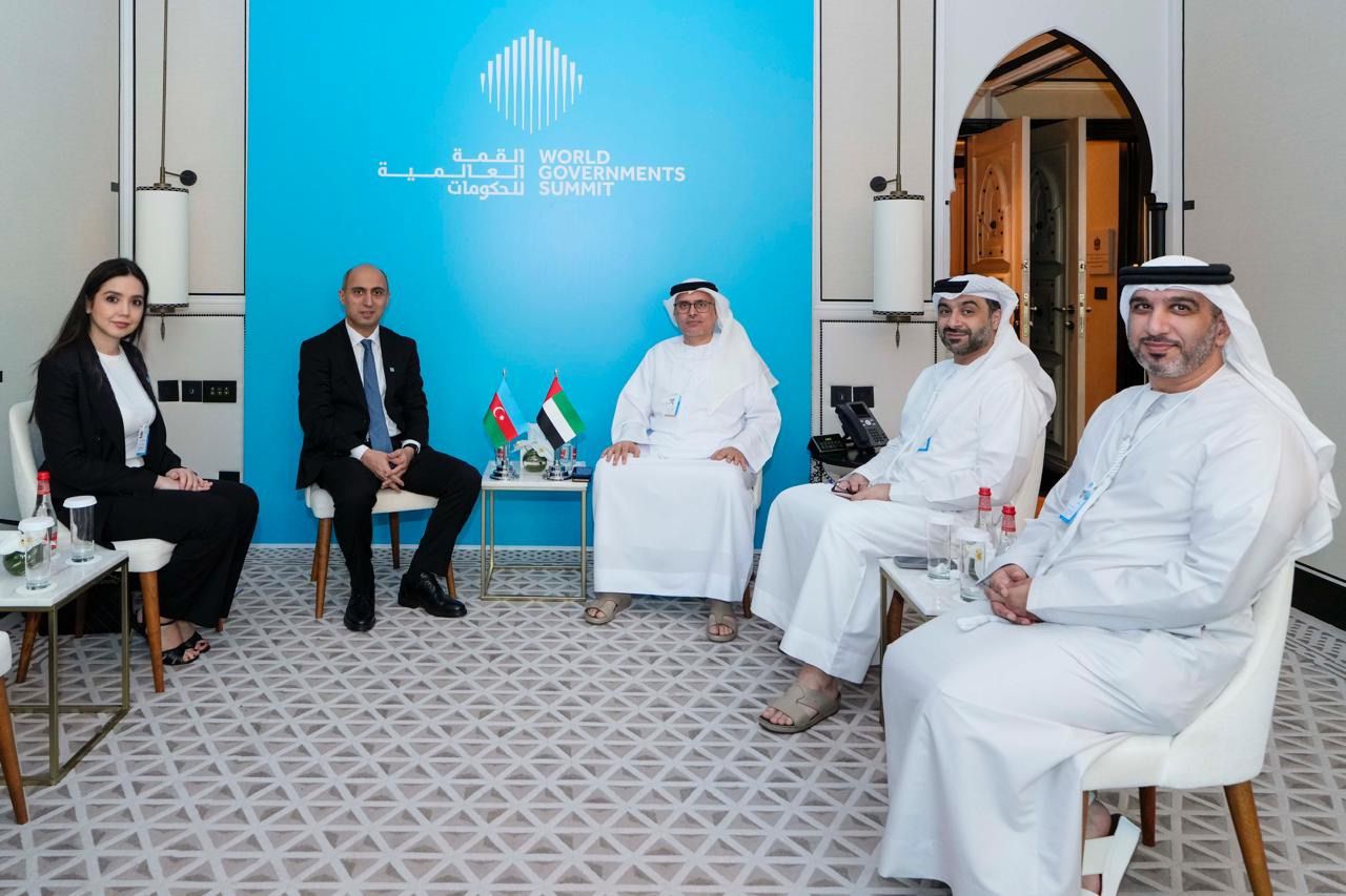 Elm və təhsil naziri Emin Əmrullayevin rəhbərlik etdiyi nümayəndə heyəti Birləşmiş Ərəb Əmirliklərinin insan resursları və əmirlik naziri, ali təhsil və elmi tədqiqatlar naziri vəzifəsini icra edən Abdulrahman Al Avarın dəvəti ilə Dubay şəhərində keçirilən Dünya Hökumət Sammitində iştirak etmək məqsədilə Birləşmiş Ərəb Əmirliklərinə səfər edib.