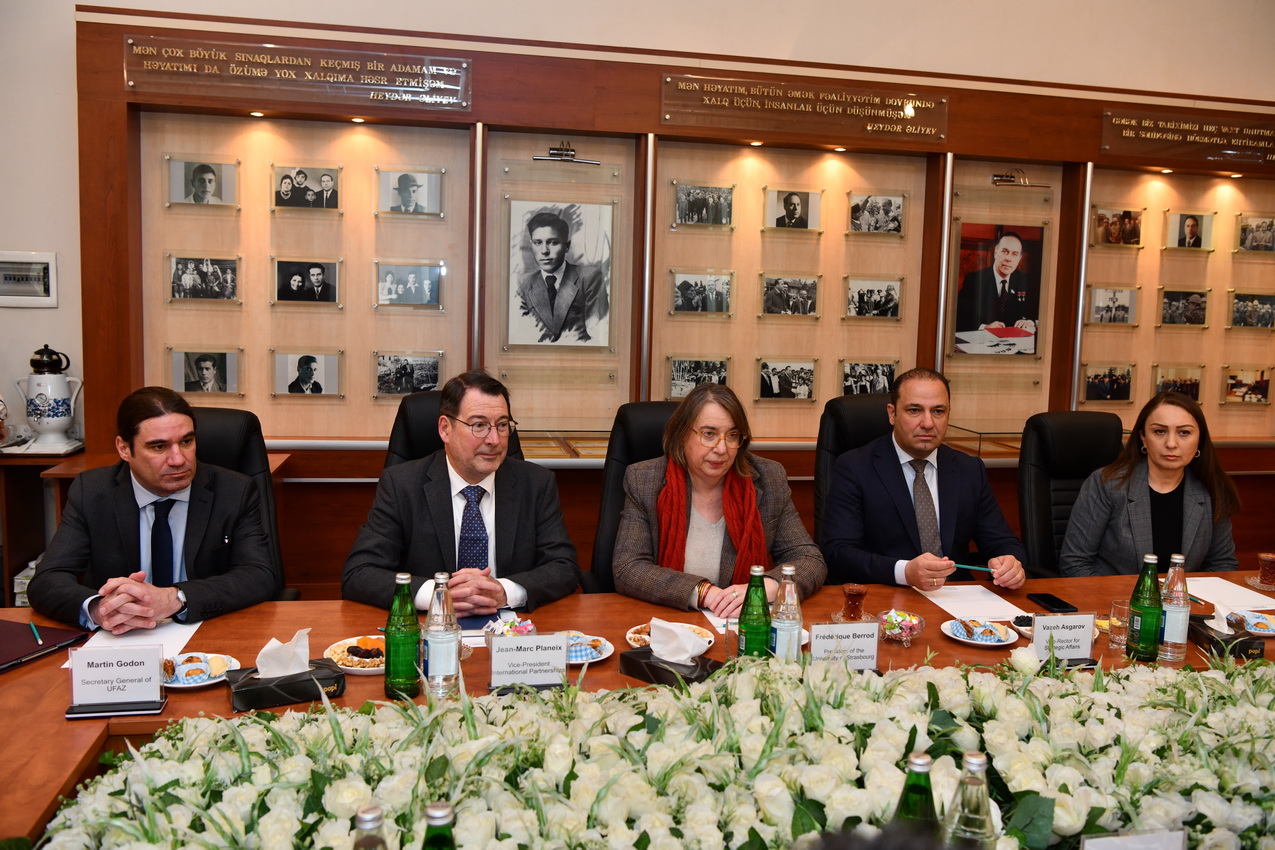 Strasburq Universitetinin prezidenti Frédérique Berrod rəhbərlik etdiyi ali təhsil müəssisəsinin bir sıra universitetlərlə geniş əməkdaşlıq əlaqələrinə malik olduğunu bildirib. O, UFAZ-ın beynəlxalq əməkdaşlıq çərçivəsində ən uğurlu layihələrdən biri olduğunu vurğulayıb və gələcəkdə iki ölkə arasında birgə elmi-tədqiqat layihələrinin həyata keçirilməsinə xüsusi önəm veriləcəyini qeyd edib.