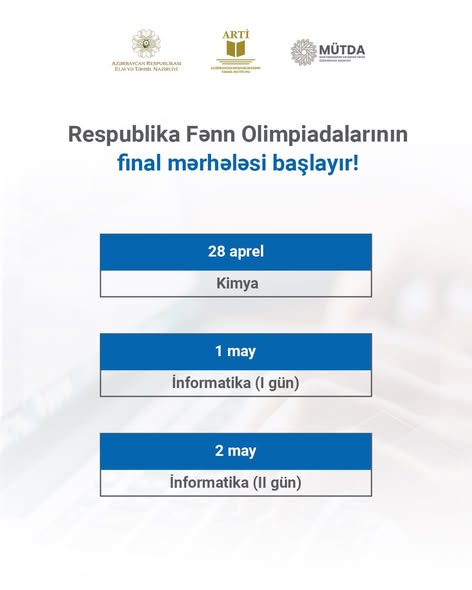 Respublika Fənn Olimpiadalarının (RFO) final mərhələsinin vaxtı açıqlanıb.