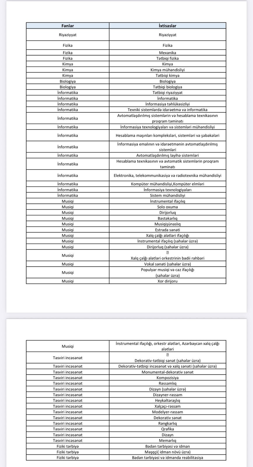 Bildirilib ki, siyahıda qeyd olunan qeyri-pedaqoji ixtisaslara sahib şəxslər müəllimlərin işə qəbulu üzrə müsabiqədə iştirak edə bilərlər.