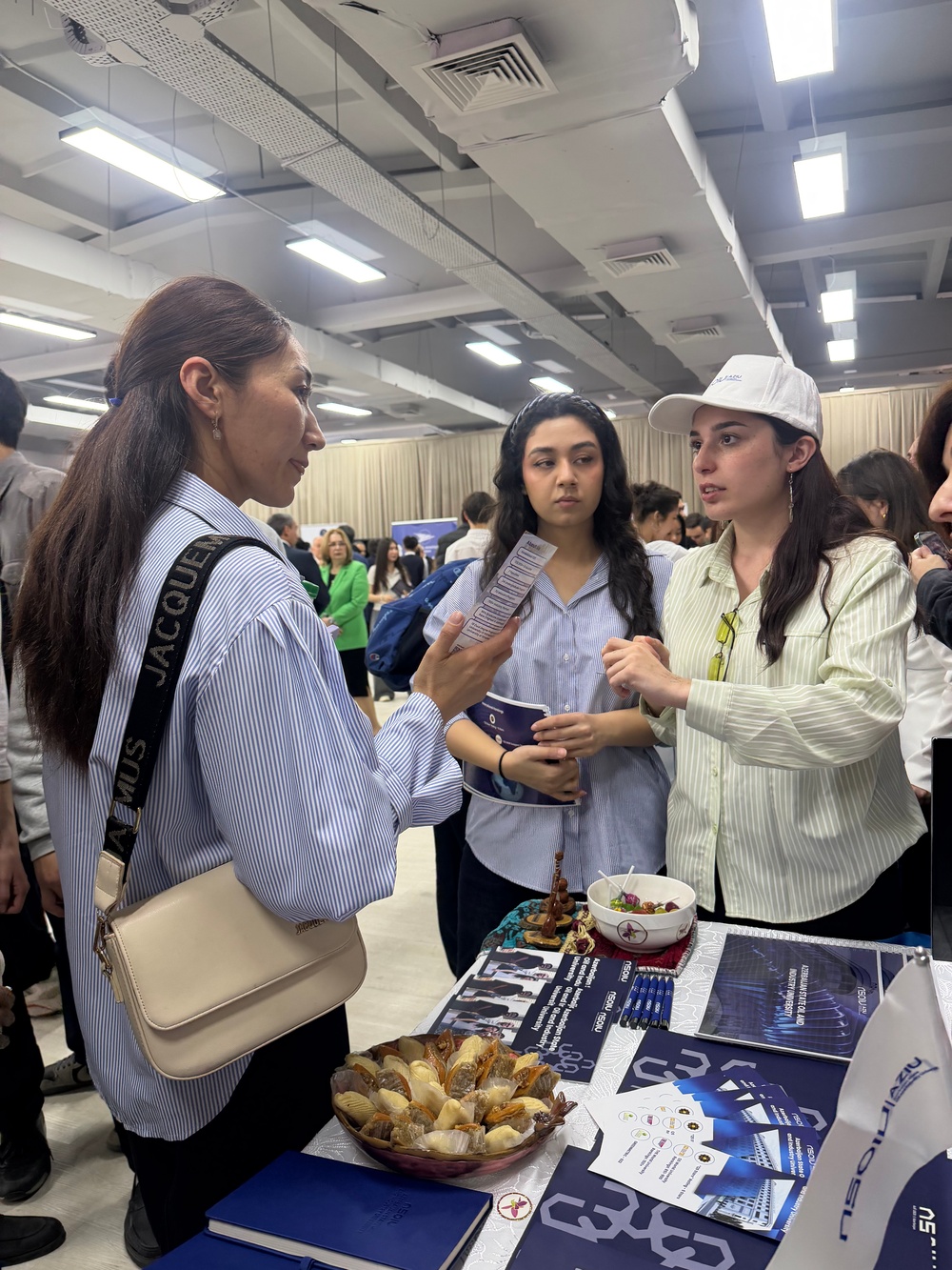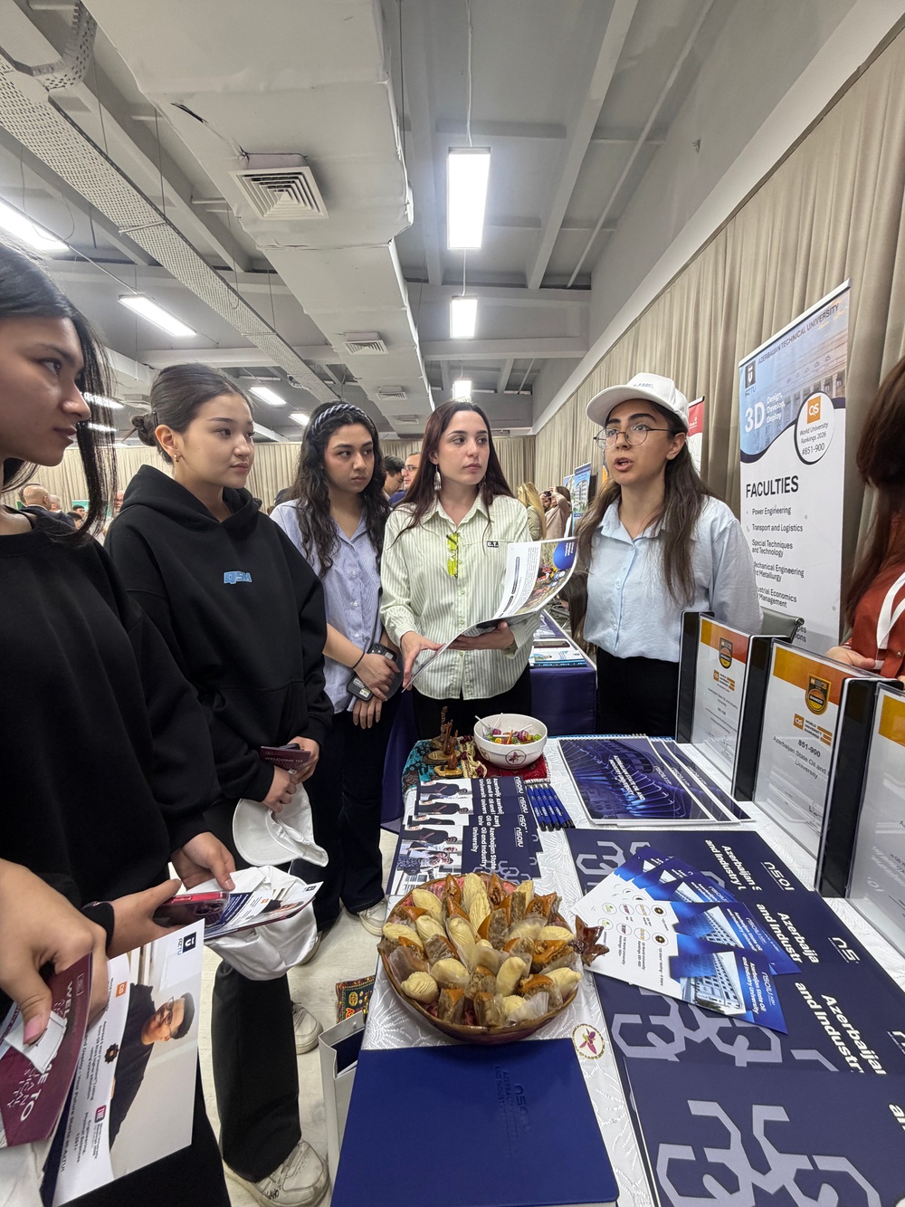Sərgi müddətində ADNSU-nun təhsil imkanları, beynəlxalq proqramları və tələbə həyatı ilə bağlı məlumatlar ziyarətçilərə təqdim olunub.