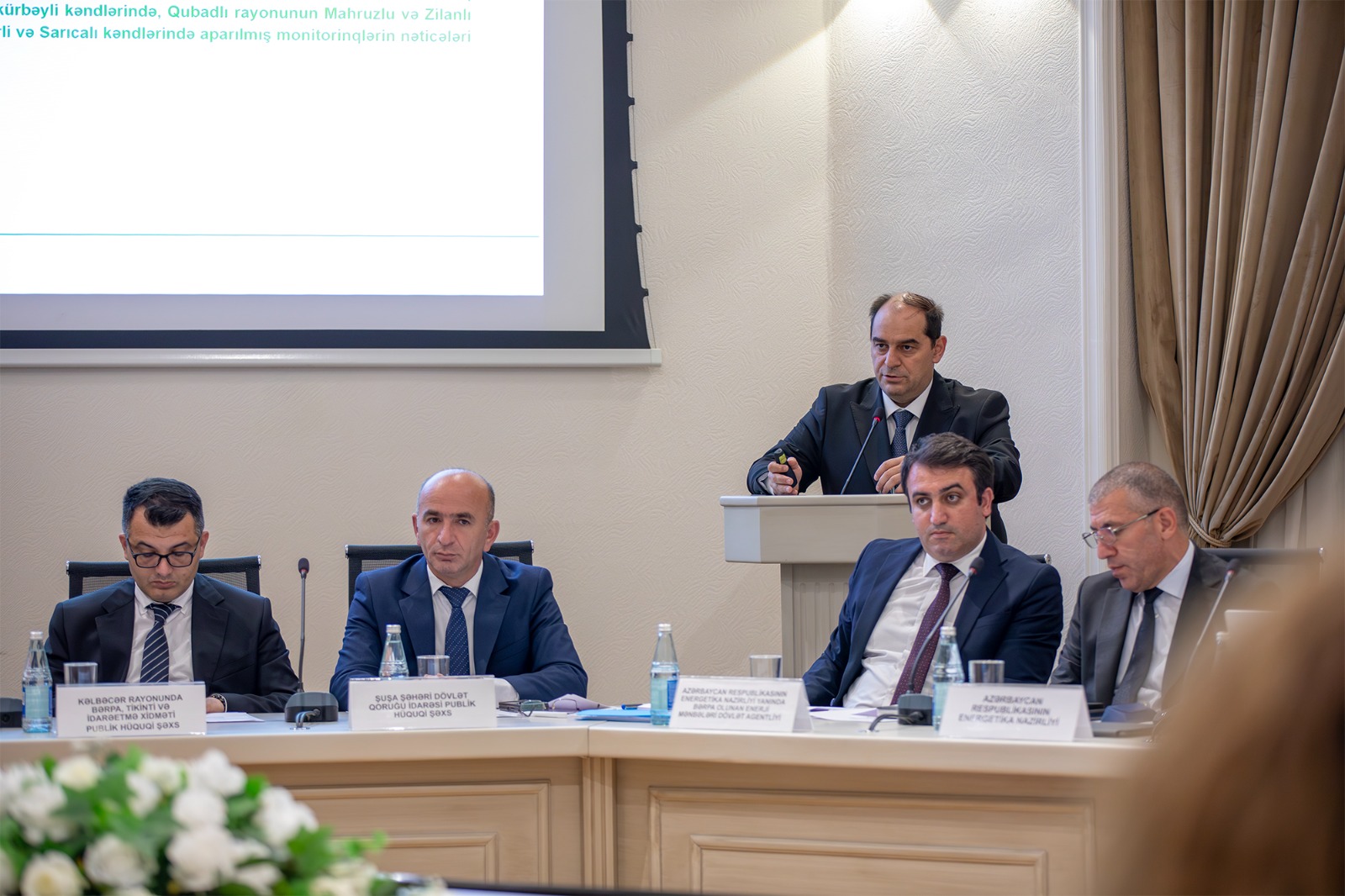 Ötən iclasda qəbul edilmiş qərarların icrası istiqamətində görülmüş işlərə dair İşçi Qrupun Katibliyi tərəfindən hesabat təqdim olunub. Həmçinin Qarabağ və Şərqi Zəngəzurun 11 şəhər və kəndində cari il ərzində həyata keçirilmiş monitorinqlərin nəticələri barədə məlumat verilib. Burada günəş panelləri və kollektorları, LED əsaslı işıqlandırma qurğuları, elektrik doldurma məntəqələri, ağıllı skamyaların quraşdırılması, habelə istilik izolyasiya materialları və enerjiyə qənaət edən lampalardan istifadənin mövcud vəziyyətini əks etdirən göstəricilər diqqətə çatdırılıb. Fərdi yaşayış evləri və inzibati-ictimai binalarda damüstü günəş panellərinin quraşdırılması ilə bağlı İcra Mexanizminə dair təqdimatda isə texniki meyarlar, icra mərhələləri və layihənin genişləndirilməsi imkanlarından bəhs olunub. Şuşa şəhərində qazanxanaların enerji təchizatına dair fikir mübadiləsi aparılıb və bu istiqamətdə gələcək addımlar nəzərdən keçirilib.