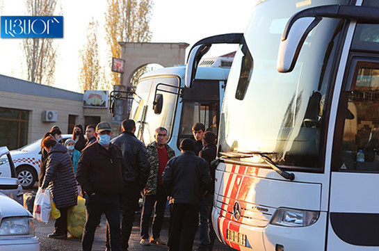 Erməniləri daşıyan nəqliyyat vasitələrini Rusiya sülhməramlı kontingentinin hərbçiləri müşayiət edib.