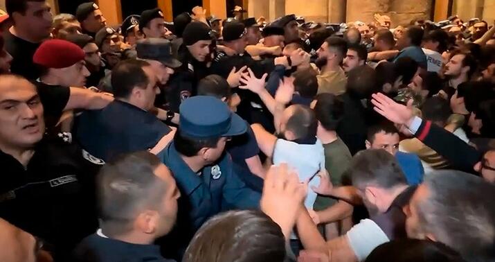 Ermənistan polisi ölkənin baş naziri Nikol Paşinyanın istefası tələbi ilə Nazirlər Kabinetinin qarşısına toplaşan etirazçılara qarşı xüsusi vasitələrdən, o cümlədən səs qumbaralardan istifadə etməyə başlayıb.