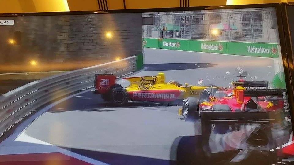 Teleqraf.com xəbər verir ki, “Prema Racing”in pilotu Antonio Fuoko əvvəlcə bolidini rəqibin maşınına vurub, daha sonra təhlükəsizlik baryerinə çırpılıb.
