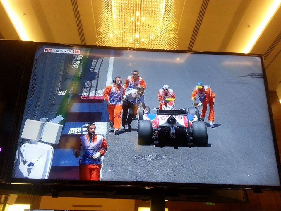 Fuokonun bolidi kran vasitəsilə trasdan götürülüb.