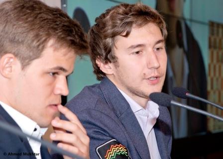 Maqnus Karlsen 3-cü turda Sergey Karyakinlə heç-heçədən sonra mətbuat konfransında jurnalistlərin suallarına cavab verib. Dünya çempionu hesabat turundakı oyunla bağlı bunları deyib: "Debütdən sonra hər ikimiz nəticəyə oynayırdıq.Mürəkkəb oyun alınmışdı. Sona yaxın daha uğurlu gediş yox idi. Ona görə heç-heçə münasib nəticə oldu. Ardıcıl ikinci dəfə 6 saata yaxın mübarizə apardım. Bu partiyaya görə heç-heçə yaxşı nəticədir".