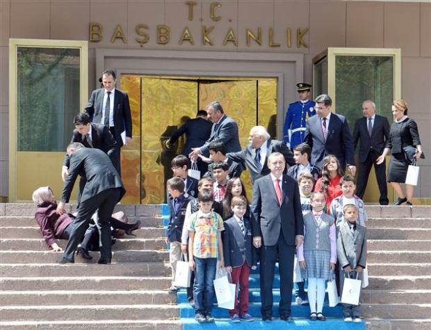 Türkiyə parlamentinin açılışının 94 illiyi, həmçinin 23 aprel Milli Suverenlik və Uşaqlar bayramı tədbirləri çərçivəsində baş nazir Rəcəb Tayyib Ərdoğan Nazirlər Kabinetinin binasında müəllim və şagirdləri qəbul edib.