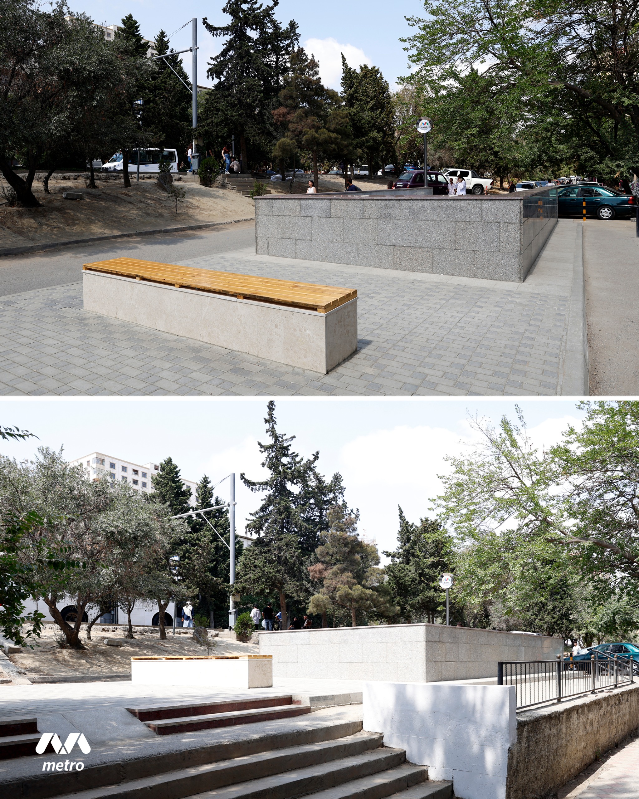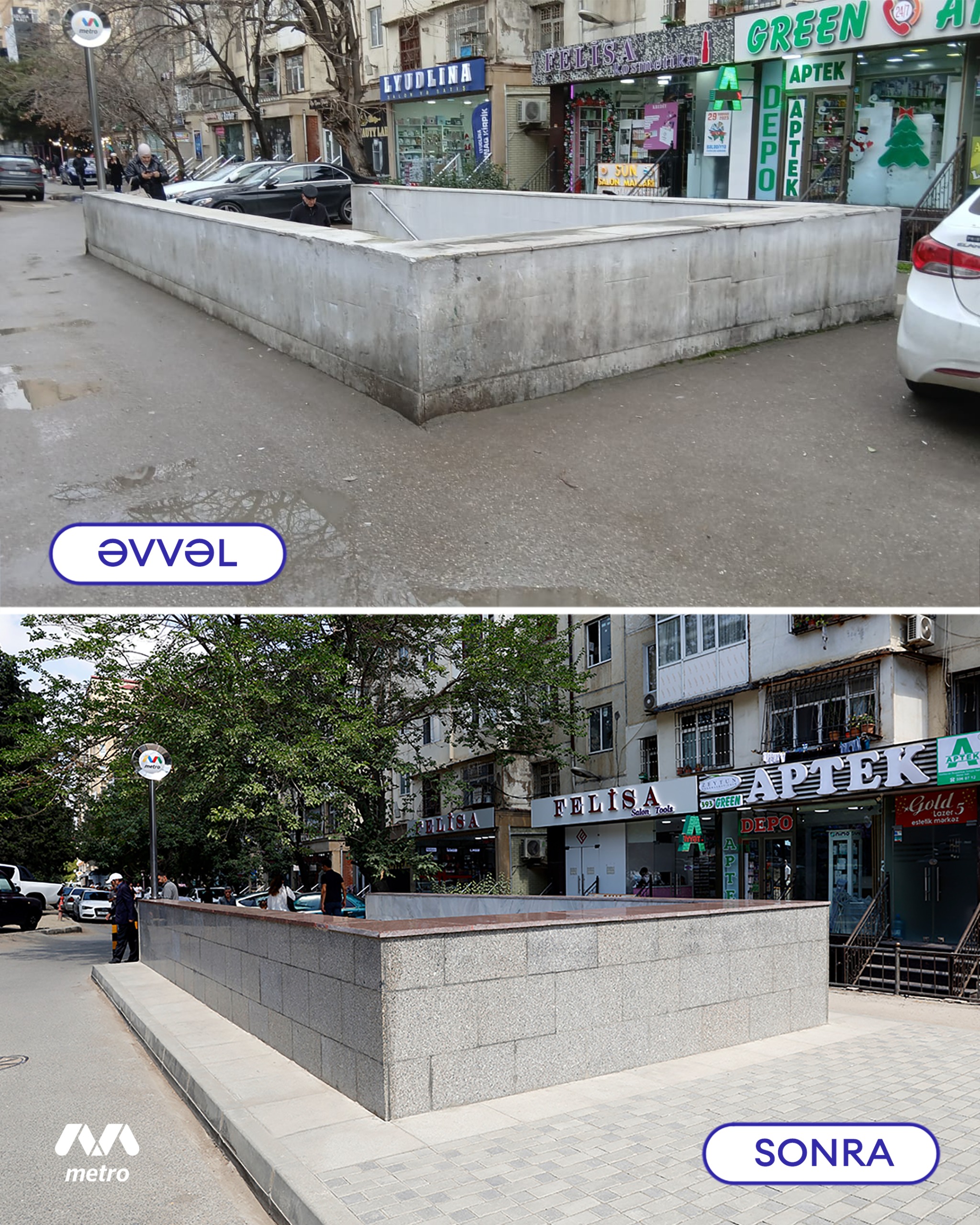 Həmçinin yerüstü hissə metal dirəklərlə çəpərlənərək ətrafda avtomobillərin səbəb olduğu xaotik vəziyyətin qarşısı alınıb.
