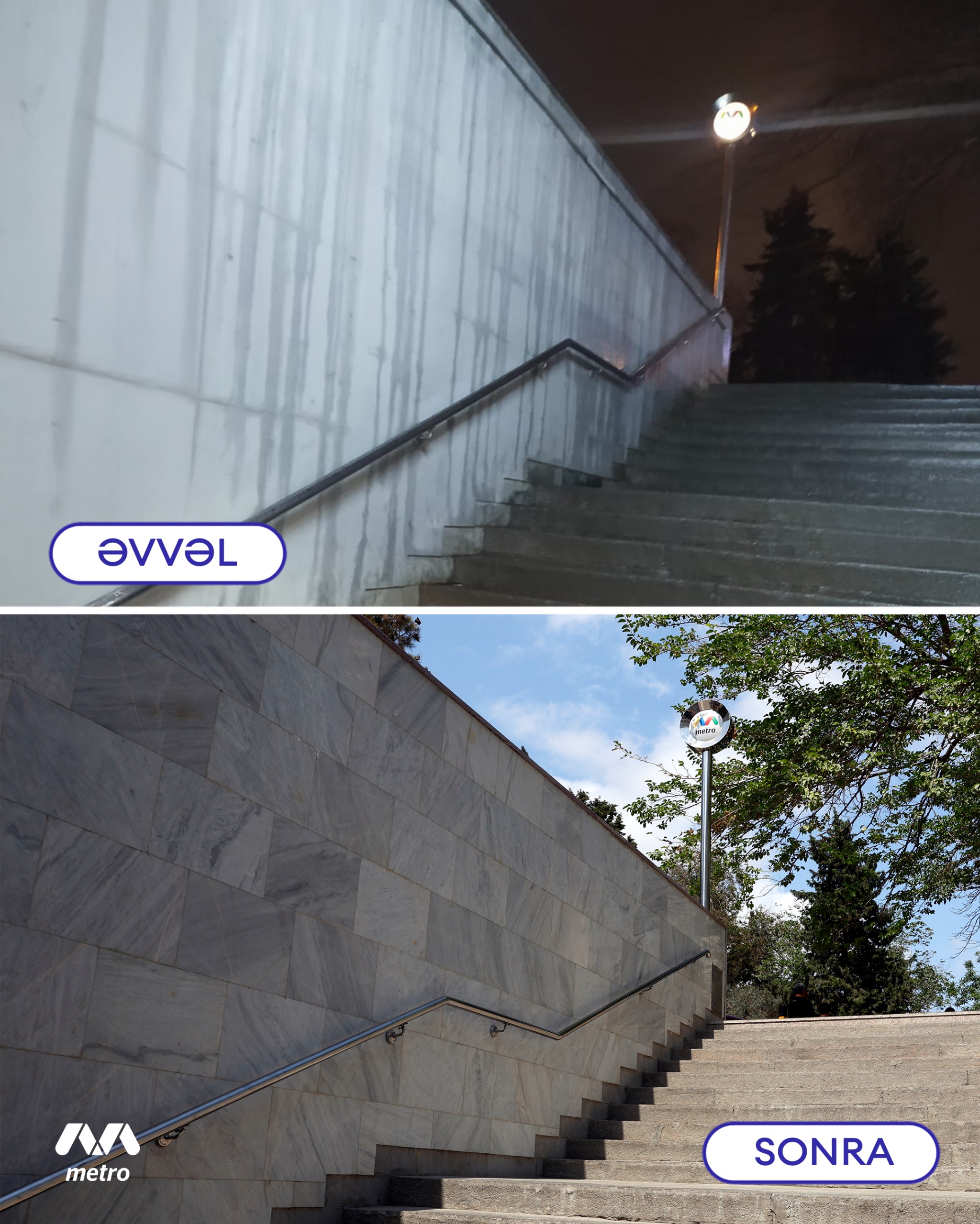 “Bakı Metropoliteni” QSC Yaşıl xətdə yerləşən "Memar Əcəmi" stansiyasının Cavadxan küçəsi istiqamətində olan keçidi və giriş-çıxışlarında aparılan əsaslı təmir işlərini yekunlaşdırıb.