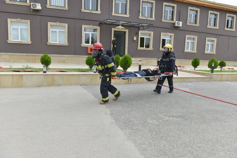 Təlimin praktiki hissəsində müəssisə ərazisində şərti yanğınla əlaqədar “Həyəcan” siqnalı verildikdən sonra müəssisə əməkdaşları tərəfindən “yanğına ilkin müdaxilə edilib”, Dövlət Yanğından Mühafizə Xidmətinin yanğından mühafizə bölmələri isə operativ qaydada hadisə yerinə çataraq, müəssisədə saxlanılan şəxslərin “təhlükəli ərazidən” təxliyə edilməsi, “yanğın” yerində çevik kəşfiyyatın aparılması və “yanğının söndürülməsi” əməliyyatlarını yerinə yetiriblər.