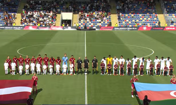 Riqadakı “Skonto” stadionunda təşkil olunan görüş qolsuz bərabərliklə başa çatıb - 0:0. Qarşılaşmada qonaq komandanın üstünlüyünə olan yeganə məqam 3 sarı vərəqənin hamısını yerli yığmanın almasıdır.