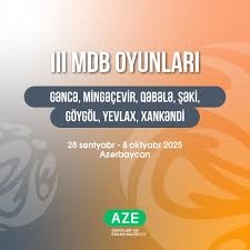 III MDB Oyunları 2025-ci il 28 sentyabr – 8 oktyabr tarixlərində Azərbaycanın yeddi şəhərində – Gəncə, Yevlax, Mingəçevir, Qəbələ, Şəki, Göygöl və Xankəndidə təşkil olunacaq.