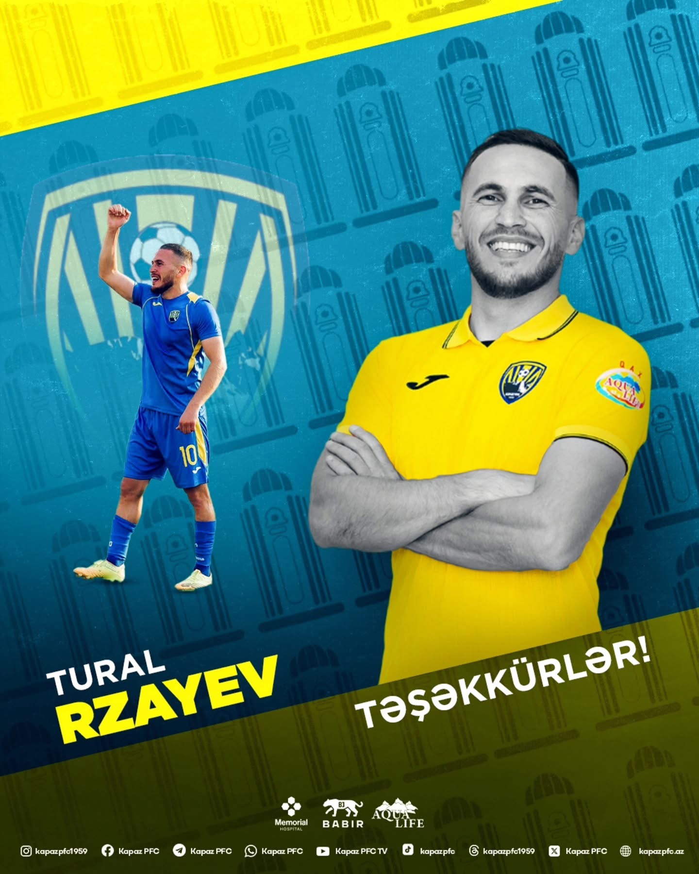 Teleqraf Gəncə təmsilçisinin rəsmi saytına istinadən xəbər verir ki, yarımmüdafiəçi Tural Rzayev ilə müqavilənin vaxtı bitib.