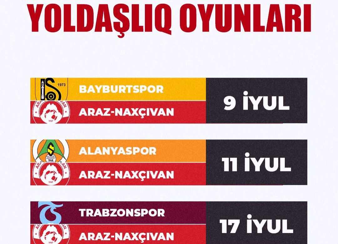 Təlim-məşq toplanışını iyulun 5-dən Türkiyənin Ərzurum şəhərində davam etdirən “Araz-Naxçıvan”ın keçirəcəyi yoldaşlıq oyunlarının tarixi və rəqibləri müəyyənləşib.