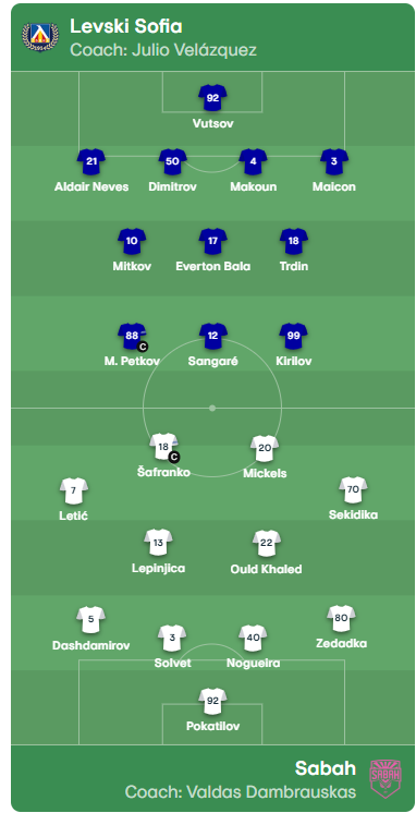 UEFA Konfrans Liqasının III təsnifat mərhələsinin birinci oyununda qarşılaşacaq "Sabah" və Bolqarıstanın "Levski" komandalarının start heyətləri açıqlanıb.