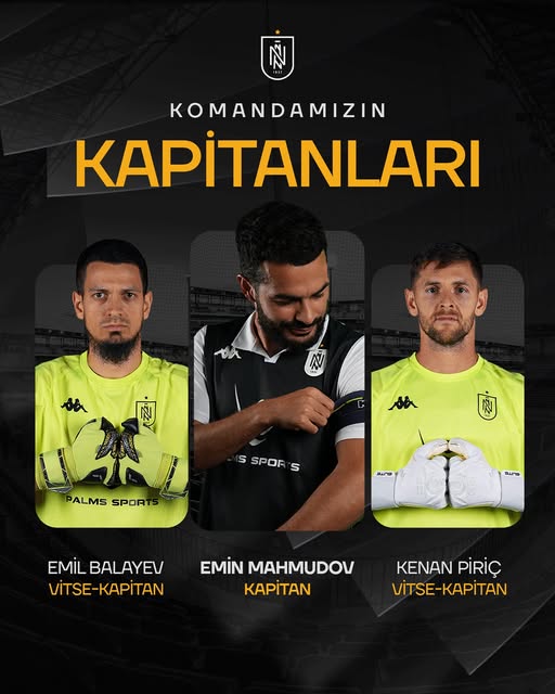 Vitse-kapitanlar isə qapıçılar olacaq. Bunlar Emil Balayev və yeni transfer Kenan Piriçdir.