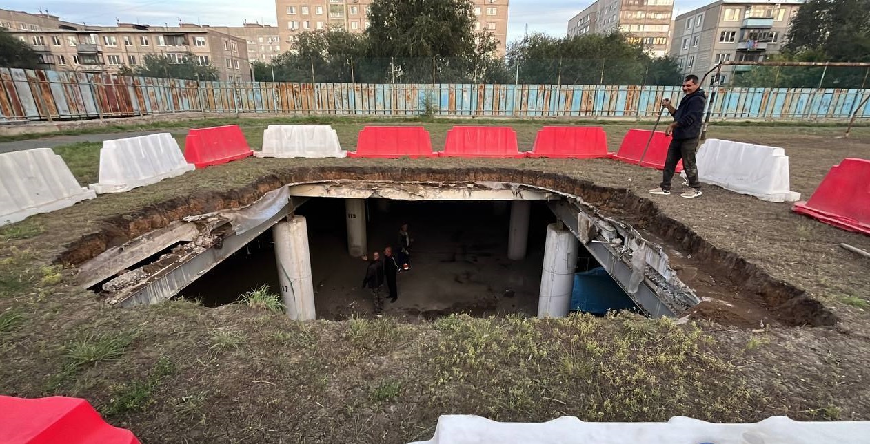 Rusiyanın Orsk şəhərinin 38 saylı məktəbinin futbol meydançası çöküb.