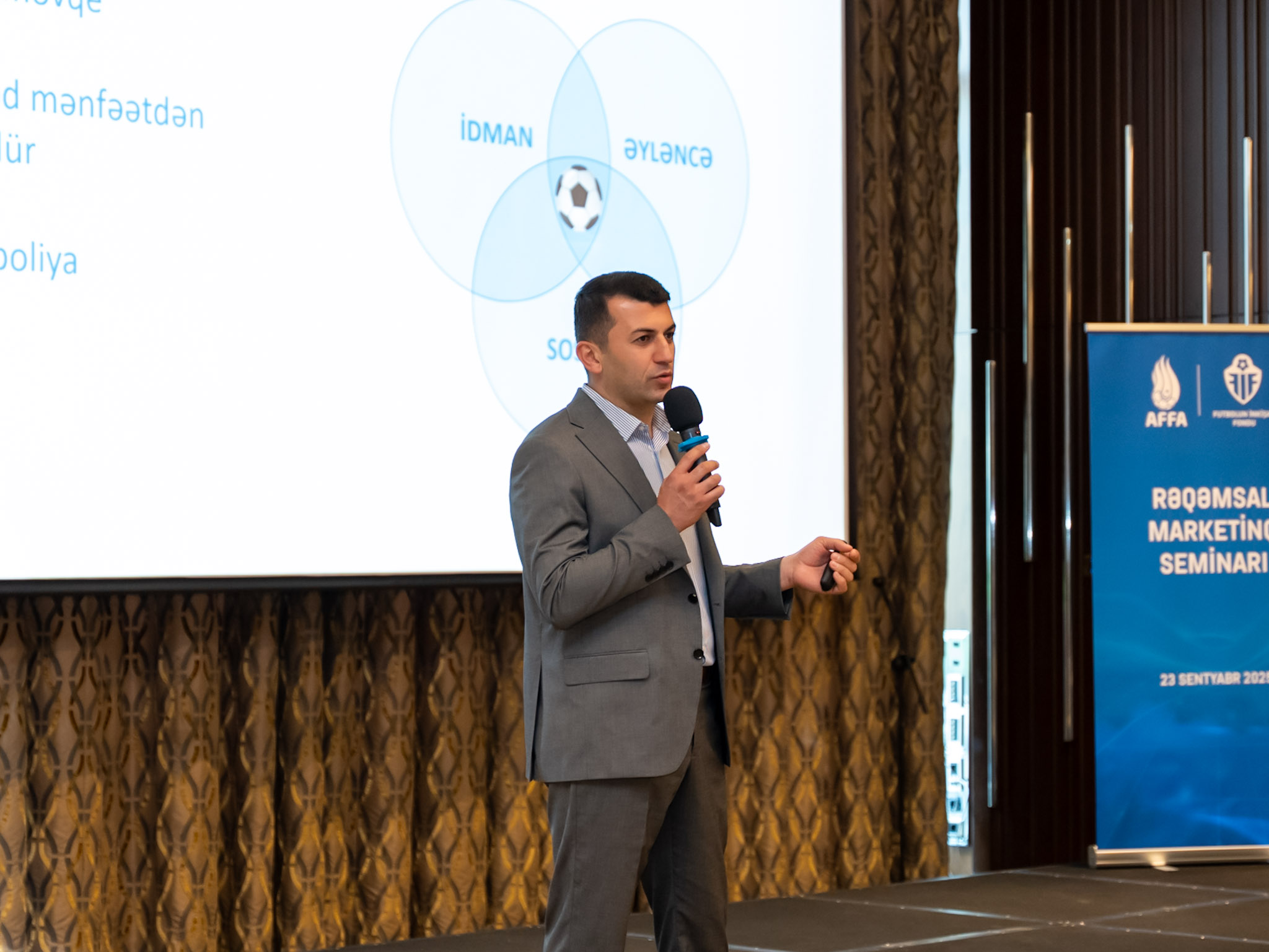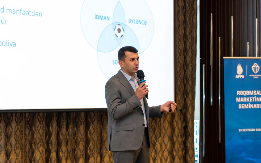 AFFA-nın baş katibinin müavini Kamran Vəliyev tədbiri giriş sözü ilə açdıqdan sonra FİF-in icraçı direktoru Tural Piriyev "Klub futbolunda marketinqin rolu" mövzusunda fikir və təcrübələrini bölüşüb.