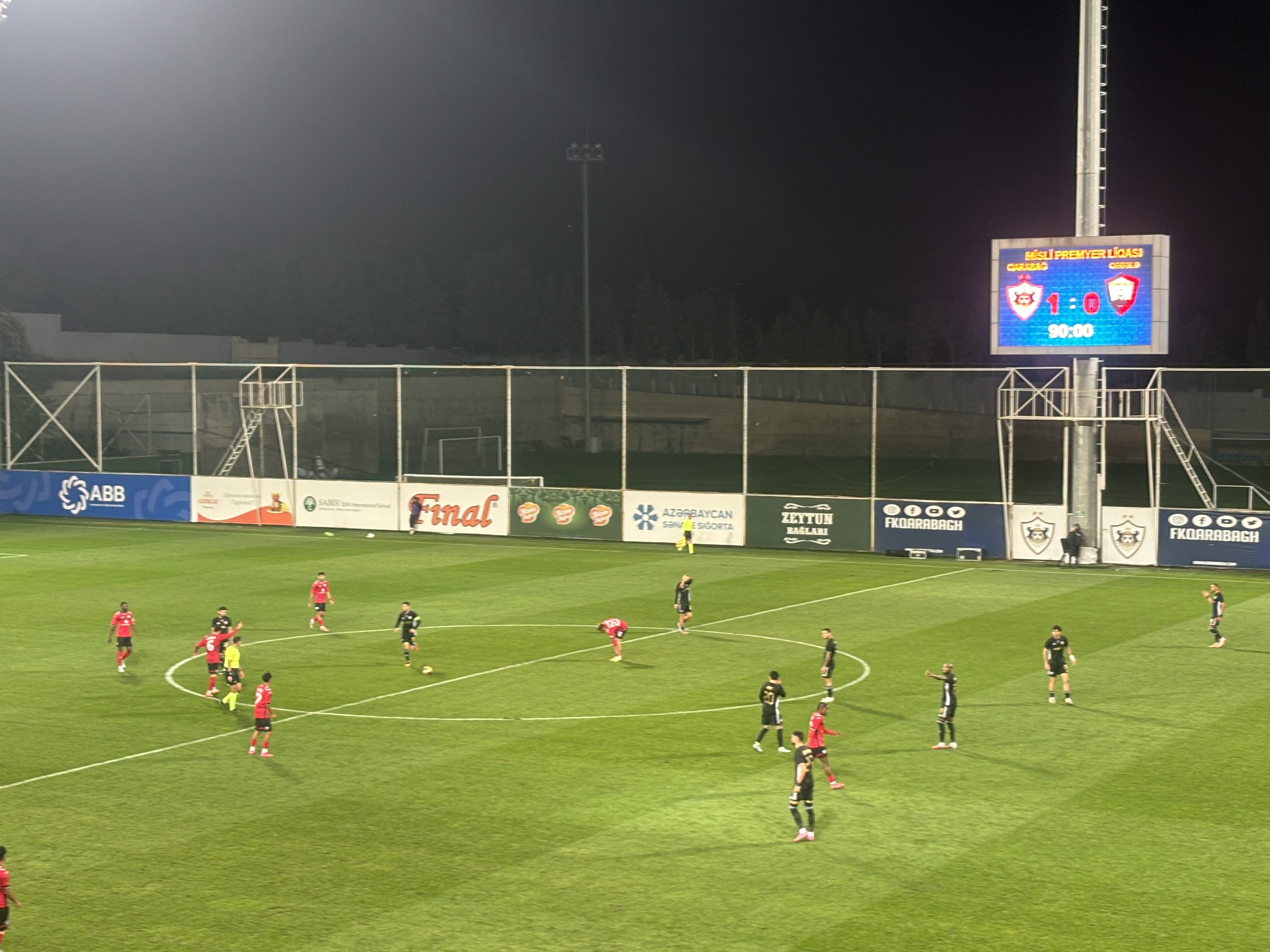 Baş hakim Rauf Cabarovun idarə etdiyi oyunun 3-cü dəqiqəsində “qırmızı-qaralar”ın futbolçusu Prins Ovusu qırmızı vərəqə ilə meydandan qovulub. Matçın 16-cı dəqiqəsində isə “köhlən atlar”ın kapitanı Abdullah Zubir fərqlənərək komandasının ilk qolunun müəllifi olub. Musa Qurbanlı isə 90+2-ci dəqiqədə ikinci qolu vurub.