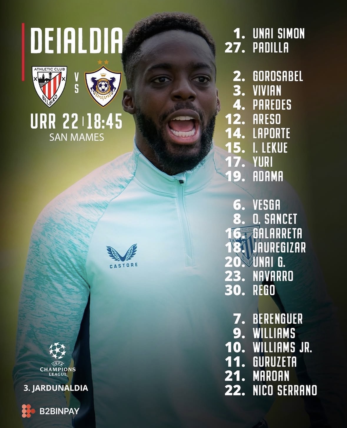 Qeyd edək ki, oktyabrın 22-də, "San Mames" stadionunda təşkil olunacaq matç Bakı vaxtı ilə saat 20:45-də başlayacaq.